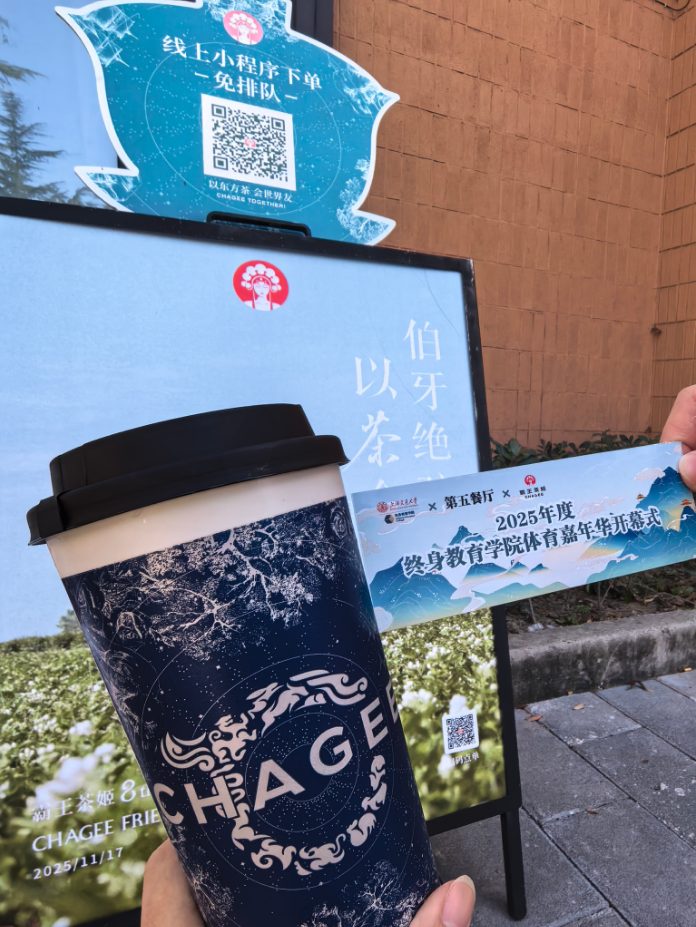 健步走活动结束后,老师们在学术活动中心领取了学院工会精心准备的暖心奶茶(霸王茶姬),为半天的运动时光增添了一份甜蜜与温暖。